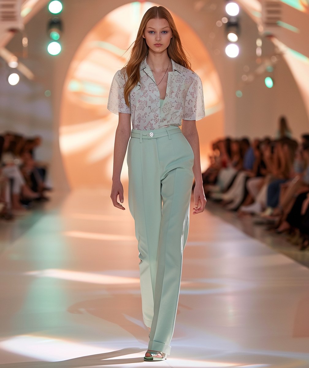 Jednym z najbardziej świeżych trendów są spodnie z delikatnych, lejących tkanin, często inspirowane bielizną.